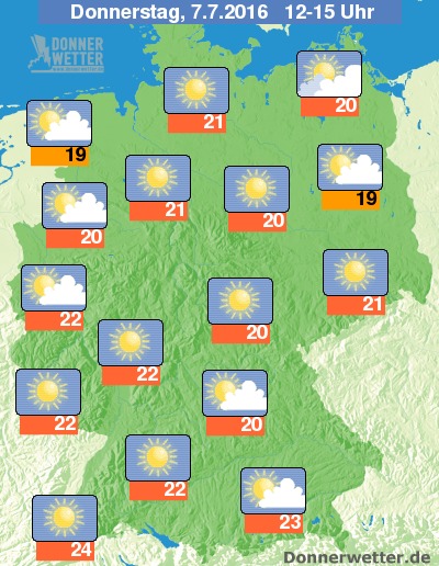 Höchstwerte um 24 Grad C am Donnerstagnachmittag.