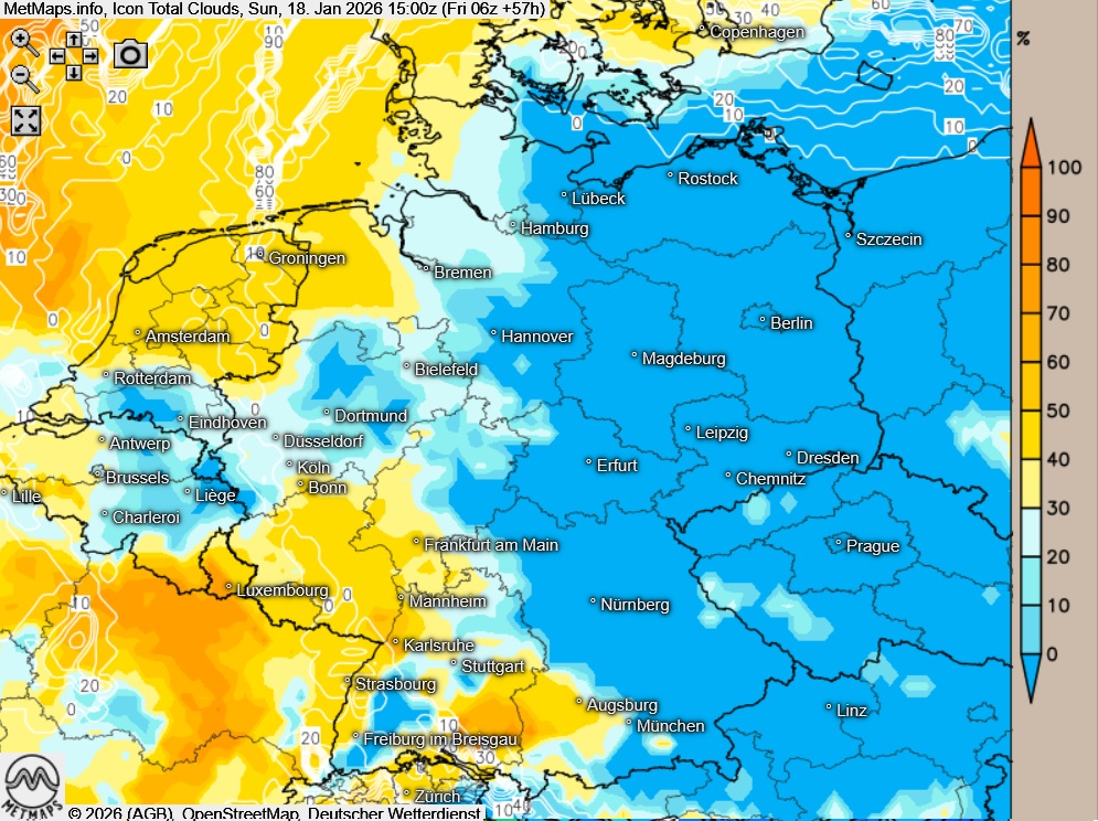 Am Sonntag kann sich über weiten Landesteilen zunächst Nebel oder Hochnebel halten, im Tagesverlauf kann sich dann gebietsweise auch häufiger mal die Sonne durchsetzen. Am freundlichsten wird der Sonntag vor allem in den Mittelgebirgen. Es bleibt trocken.
