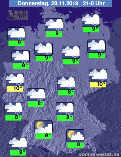 Am Abend halten sich meistens kompakte Wolken aus denen es zeitweise regnet. Lediglich im Nordseeumfeld funkeln zwischen den Schauern auch zwischendurch mal die Sterne.