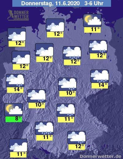 Auch während der zweiten Nachthälfte muss regional mit Regengüssen gerechnet werden. Sonst halten sich meistens die Wolken und lassen nur stellenweise Mond und Sterne zum Vorschein kommen.