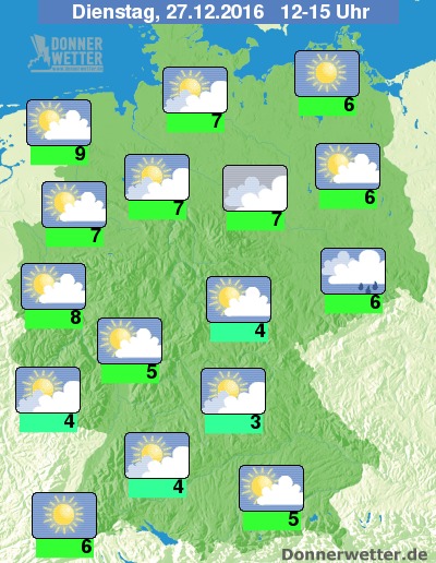 Heute Nachmittag halten sich im Osten und Südosten oft dichte Wolken, die hier und da etwas Regen bringen. Oft sonnig oder nur locker bewölkt ist es hingegen sowohl im Nordosten Deutschlands als auch vom Süden bis in den Westen des Landes, hier bleibt es trocken. Im übrigen Land ist es teils stark, teils aufgelockert bewölkt und dazu ebenso trocken. Die Temperatur liegt bei 3 Grad in Mittelfranken bis 9 Grad im Emsland. Besonders an den Küsten ist es noch stürmisch mit möglichen Sturmböen, starker bis stürmischer Wind weht aber auch im übrigen Norden und Osten des Landes.