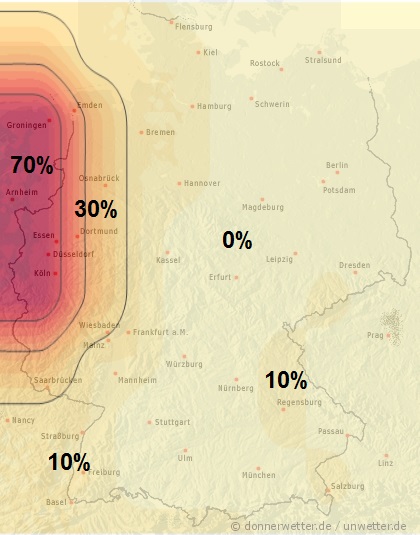 Heute ist es im Land verbreitet sonnig bei nur seltenen harmlosen Wolken. Erst ab dem Nachmittag sind im Westen gebietsweise Schauer und örtliche Gewitter möglich. Vereinzelne Schauer können sich auch im Ostseeumfeld bilden. Im übrigen Land bleibt es trocken bei Höchstwerten von 25 Grad in Rostock und 32 Grad in der Kölner Bucht.
