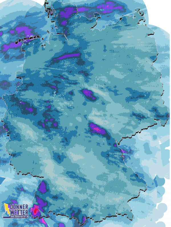 Heute halten sich über der Südwesthälfte der Republik dichte Wolken und es fällt wiederholt Regen. Dagegen ist es im Norden und Osten teils stark, teils auch gering bewölkt, dabei bleibt es trocken. Die Temperatur steigt auf 4 Grad in Vorpommern und bis 12 Grad im Breisgau.
