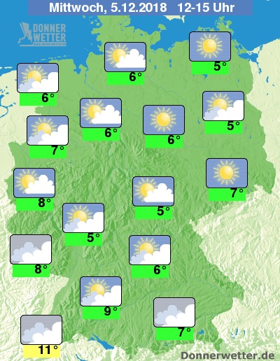 Am frühen Nachmittag zeigt sich insbesondere im Osten die Sonne noch häufiger. Sonst wechseln sich Sonne und Wolken miteinander ab. Im Süden und Südwesten bleiben die Wolken dichter, Regen fällt jedoch zunächst nicht.