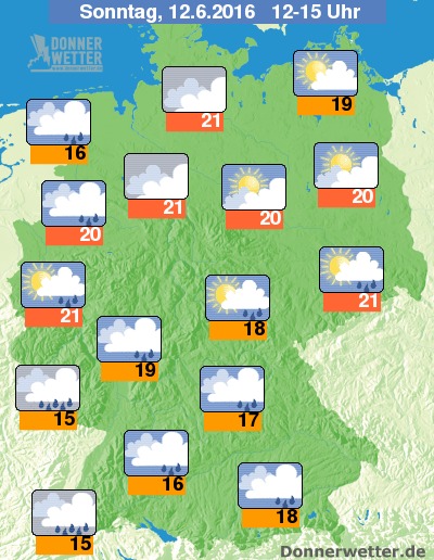 Die Vorbereitungen zum Public-Viewing oder zu den beliebten Gartenparty vor unserm Länderspiel gegen die Ukraine (21 Uhr) dürfte am Abend doch oft von Schauern und auch einzelnen Gewittern gestört werden. Im Norden und Osten können wir Fussballfreunde jedoch überwiegend auf trockenes und auch zeitweise freundliches Wetter mit Sonnenschein setzen. Sonst sieht es bei teils nassen Bedingungen eher nach einem feucht-fröhlichen oder nasskühlen Fussballgenuß aus. Die Temperatur liegt bei 17 Grad in Ostfriesland und 22 Grad in Köln.