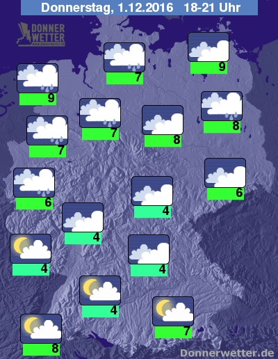 Die Höchstwerte liegen am Nachmittag zwischen 4 Grad in weiten Teilen Bayerns und Baden-Württembergs und milden 9 Grad an den Küsten.