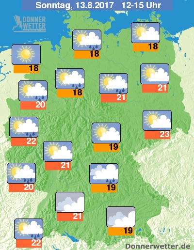 Heute Nachmittag scheint vor allem über der Nordhälfte Deutschlands häufig die Sonne und es ziehen überwiegend nur lockere Wolken durch, teils sind aber auch mal dichte Wolken und vereinzelt auch Schauer möglich. Im Süden ist es oft stark und sonst aufgelockert bewölkt, dazu können sich einzelne Schauer bilden. Die Temperatur liegt bei 18 Grad an den deutschen Küsten und bis 23 Grad in der Lausitz.