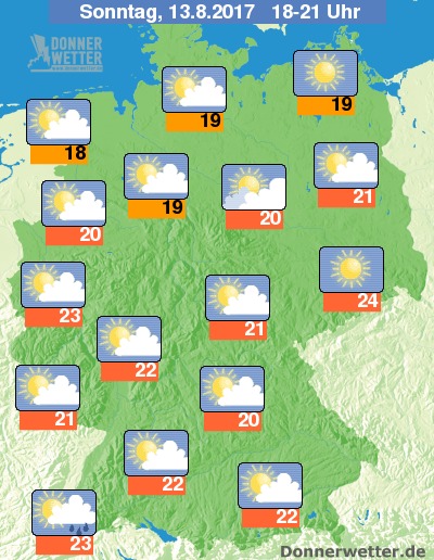 Heute Abend ist es verbreitet heiter bis locker bewölkt, hier und da sogar sonnig. Nur im Südwesten sind bei dichten Wolken auch noch einzelne Schauer möglich, sonst bleibt es trocken. Die Temperatur liegt bei 18 Grad in Wilhelmshaven und etwa 24 Grad in Dresden.