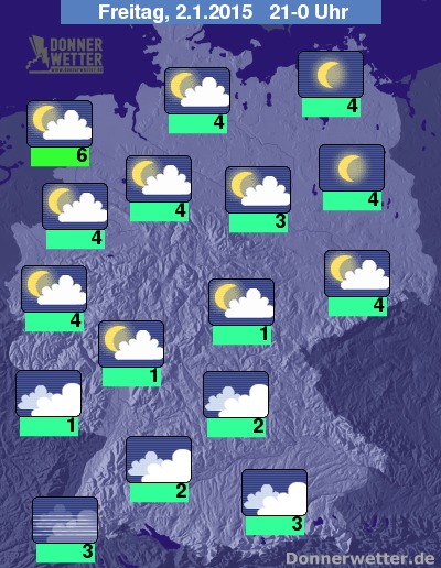 Heute Abend klingt auch der Regen in Süddeutschland nach und nach ab und nachfolgend ist es überall trocken, im Süden bleibt es dabei aber weitgehend stark bewölkt und gebietsweise bildet sich auch Nebel oder Hochnebel. Sonst ist es oft aufgelockert bewölkt, im Nordosten und Osten auch oft sternenklar. Die Abendtemperaturen liegen bei 6 Grad in Ostfriesland und um 1 Grad im Coburger Land.
