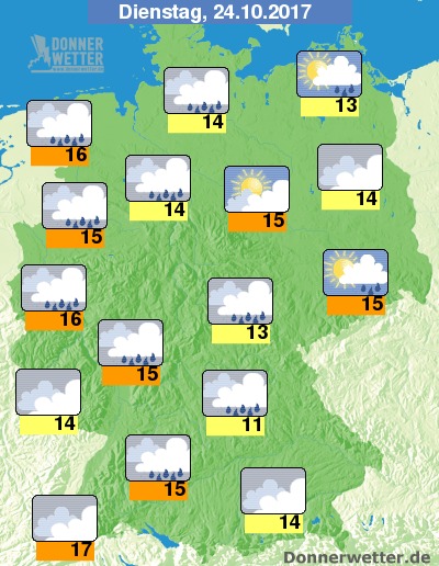 Der Himmel über Deutschland präsentiert sich häufig wolkenverhangen und grau. Der Norden und die Mitte wird im Tagesverlauf von einem Regengebiet überquert, meist regnet oder nieselt es dabei aber nur leicht. Im Südwesten und Süden stellen sich am Nachmittag dagegen einige Aufheiterungen ein. Hier bleibt es auch in der Regel trocken. Die Höchsttemperaturen liegen meist zwischen 10 und 18 Grad. Im Norden weht der Wind zeitweise spürbar, im Süden bleibt er meist nur schwach.