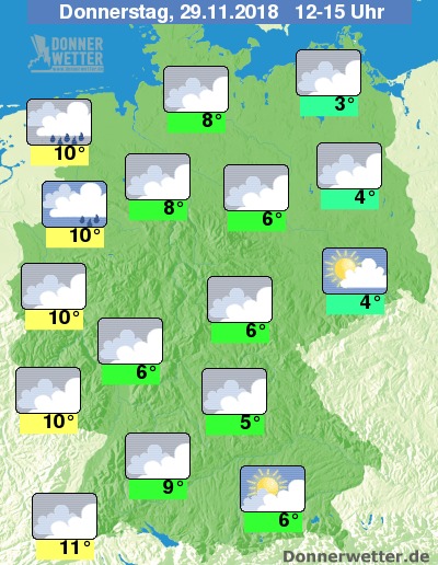 Am frühen Nachmittag fällt vor allem im Emsland gelegentlich Regen oder Sprühregen, sonst bleibt es meistens zwar trübe aber überwiegend trocken. In Teilen von Bayern und Sachsen lässt sich zwischen den Wolken wahrscheinlich auch mal für einige Zeit die Sonne blicken.