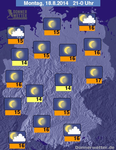 In der Nacht zum Dienstag bleibt es mehrheitlich klar, dabei bildet sich stellenweise Nebel oder Hochnebel, aber es bleibt weitgehend trocken. Dichtere Wolken halten sich zum Teil in Schleswig-Holstein und im Nordseeumfeld, hier sind einzelne Schauer möglich. Die Temperatur sinkt auf 12 Grad in Ostfriesland und 7 Grad im Thüringer Wald.