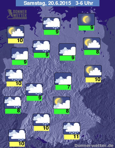 Am Samstag zeigt sich das Wetter weiterhin sehr unbeständig und bei einem Wechsel aus oft dichten Wolken und zeitweiligen Auflockerungen können sich immer wieder Schauer bilden. Vom Nordosten, über den Osten bis in den Südosten der Republik sind zudem auch Gewitter möglich. Die Temperatur steigt auf kühle 15 Grad in Augsburg und bis 19 Grad in Berlin.