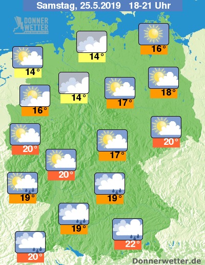 Die Temperaturen sinken bis zum späten Abend auf Werte um 12 Grad an der Weser und um 18 Grad im Rheinland.