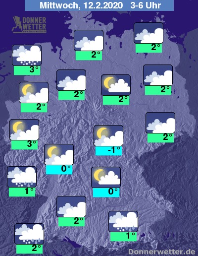 In der Nacht auf Mittwoch lockern die Wolken vor allem in der Mitte und im Westen des Landes gebietsweise auf, sonst bleibt der Himmel überwiegend bedeckt. Mit zeitweisen Schauern, die meist als Schneeregen, Schnee oder Graupel fallen, muss in den Nachtstunden vor allem an den Küsten sowie im Süden Bayerns und Baden-Württembergs gerechnet werden.