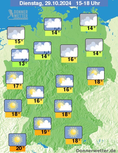 Am Dienstagnachmittag zeigt sich der Himmel über dem Norden des Landes stark bewölkt oder bedeckt, dabei muss vor allem im Nordwesten noch zeitweise mit etwas Regen gerechnet werden. In den übrigen Landesteilen ist es teils heiter bis wolkig, teils aufgelockert bewölkt und es bleibt niederschlagsfrei.