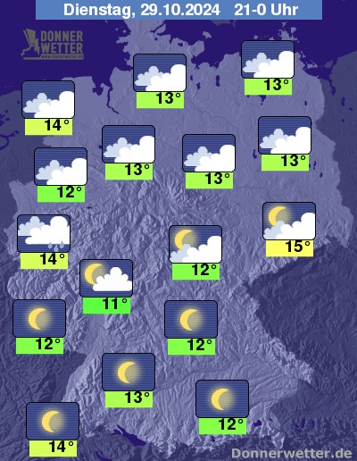 In der Nacht zum Mittwoch bleibt der Himmel über der Nordhälfte bedeckt, es sind aber nur noch selten Niederschläge möglich. Im Süden bildet sich im Nachtverlauf verbreitet Nebel oder Hochnebel.