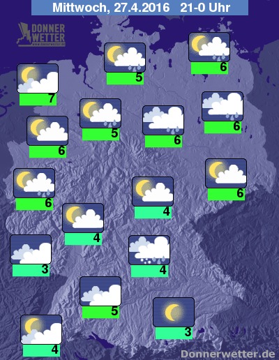 Heute Abend zeigt sich im Südosten und am Alpenrand ein verbreitet sternenklarer Himmel. Besonders im Norden und Nordosten bilden sich bei oft starker Bewölkung dagegen gebietsweise Schauer, teilweise auch mit Schnee und Graupel durchmischt. Im übrigen Bundesgebiet ist es wechselnd, hier und da jedoch auch stark bewölkt, jedoch von vereinzelten Schauern abgesehen größtenteils trocken. Die Abendtemperatur liegt bei 7 Grad in Ostfriesland und 3 Grad in München.