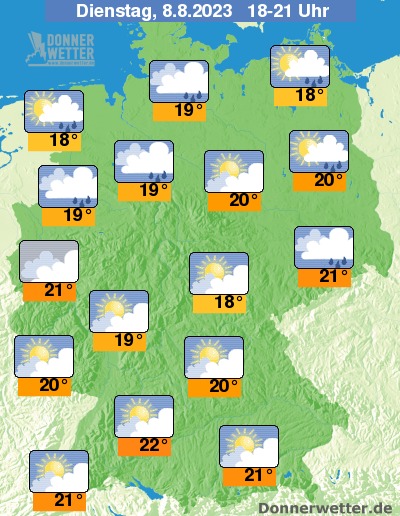 Am Mittwoch ist es im Süden noch oft bedeckt und hier bilden sich gebietsweise Schauer. Im übrigen Bundesgebiet ist es teils stark, zunehmend aber aufgelockert bewölkt und gegen Abend oft nur noch gering bewölkt. Dazu bleibt es dann trocken bei Werten von 19 Grad in Erfurt und bis 24 Grad in Köln.
