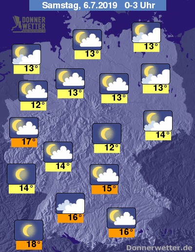 In der Nacht auf Samstag bestimmen lockere Wolken das Himmelsbild über dem Land, im Südwesten sowie in der Mitte kann es gebietsweise auch aufklaren. Dichtere Wolken halten sich meist nur im Küstenumfeld, an der Nordseeküste können auch einzelne Schauer fallen. Sonst bleibt es meist trocken.