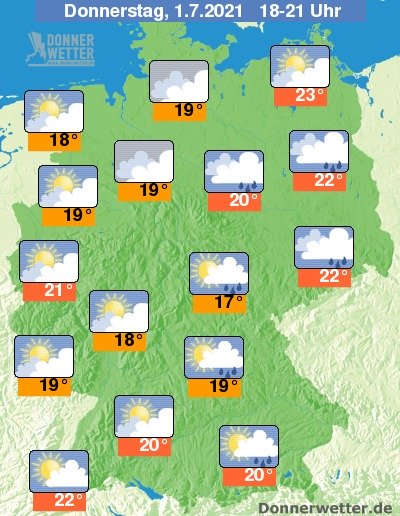 Heute Abend bilden sich an den Alpen, im Südosten und Osten Deutschlands weiterhin gebietsweise Schauer. Im übrigen Bundesgebiet ist es wechselnd oder stark bewölkt, aber überwiegend trocken. Die Temperatur liegt bei 17 Grad in Jena und bis 23 Grad in Neubrandenburg.