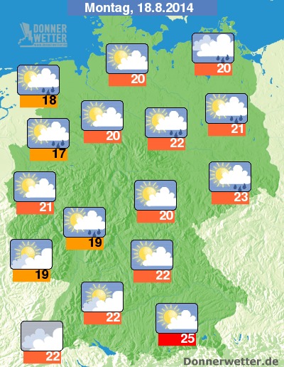 Die neue Woche startet ähnlich wie die vergangene Woche aufgehört ab, das wechselhafte und eher kühle Wetter bleibt uns erhalten. So müssen wir am Montag tagsüber mit einzelnen Schauern kalkulieren, vor allem in der Südhälfte des Landes bleibt es aber auch häufig trocken, aber auch sonst kann sich immer wieder die Sonne zeigen. Die Temperatur steigt auf 17 Grad am Niederrhein und sommerlich 25 Grad im Ciemgau.