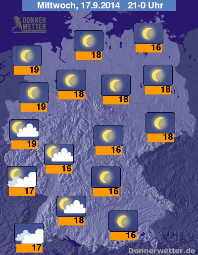 In Cottbus sollte der Himmel am Abend ebenfalls weitgehend sternenklar bleiben, jedoch sinken die Temperatur der Jahreszeit entsprechend doch schon recht rasch, so dass die meisten spätestens ab Mitternacht kaum mehr im T-Shirt unterwegs sein werden.