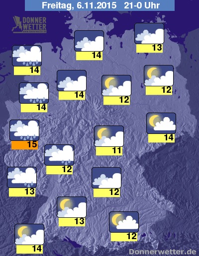 Im weiteren Abendverlauf breiten sich zwischen Ems- und Saarland erste Schauergebiete aus. Im Rest des Landes bleibt es bei teils wechselnder, teils dichter Bewölkung überwiegend trocken.