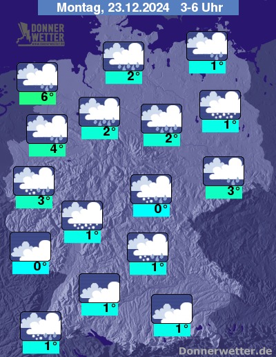 Die Temperaturen gehen in den frühen Morgenstunden zurück auf Werte um 6 Grad an der Nordseeküste und 0 Grad in Franken.