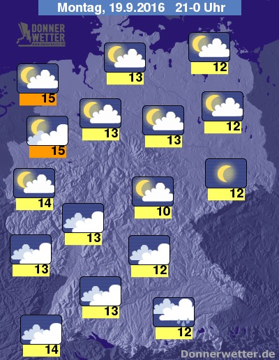 In der ersten Nachthälfte zeigt sich der Himmel im Nordosten des Landes locker bewölkt, stellenweise auch klar, und es bleibt trocken. Im Süden bleibt der Himmel auch in den späten Abendstunden bedeckt, Schauer sind aber nur noch vereinzelt am Alpenrand zu erwarten.