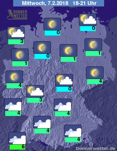 Heute Abend ist der Himmel vom Norden bis zur breiten Landesmitte hin überwiegend sternenklar, hier und da auch mal gering bewölkt. Im Süden halten sich hingegen meist dichte Wolken. Es bleibt überall trocken bei 0 bis 6 Grad.