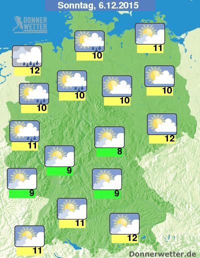 Heute Vormittag wechseln sich Sonne und Wolken einander ab und es bleibt überall trocken. Vor allem nach Süden hin zeigt sich der Himmel auch oft heiter bis sonnig. Am Nachmittag ziehen von Nordwesten her jedoch dichte Wolken mit Regen auf, die bis zum Abend auch den Norden und Westen Deutschlands bedecken. Über der Südosthälfte der Republik bleibt es hingegen meist locker oder aufgelockert bewölkt und dazu trocken. Die Temperatur steigt auf 8 Grad im Eichsfeld und bis 12 Grad in München. Im Norden weht verbreitet starker bis stürmischer Wind, in Küstennähe herrscht oft Sturm mit schweren Sturmböen.