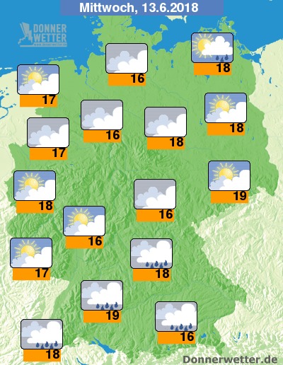 Am Mittwoch bleibt es im Südosten und im übrigen Alpenvorland bedeckt, dabei fällt hier häufig Regen. Im übrigen Bundesgebiet ist es stark, zum Teil auch aufgelockert bewölkt, dabei ist nur selten etwas Regen möglich. Die Temperatur steigt auf 16 Grad im Eichsfeld und bis 19 Grad in der Lausitz.