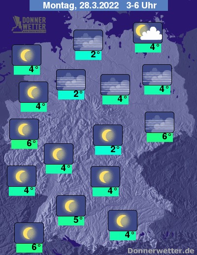 In der bevorstehenden Nacht zeigt sich der Himmel über dem Land verbreitet sternenklar. In Vorpommern bleiben bis zum Morgen hin noch oft lockere Wolken erhalten, dazu bleibt es trocken. Die Temperatur sinkt auf 6 Grad in Dresden und bis 2 Grad in Hamburg.