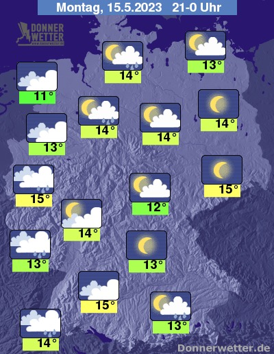 Am späteren Abend fällt im Westen und Südwesten, am Alpenrand sowie entlang der Weser zeitweise Regen, in den übrigen Landesteilen bleibt es bei meist geringer Bewölkung trocken. Im Osten und Südosten kann der Himmel auch aufklaren.
