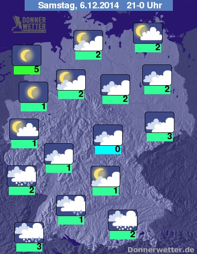 Heute Abend fällt am Nordrand der Alpen weiterhin zeitweise Schnee, weiter nördlich ist es ebenfalls meist bedeckt oder trüb und es fällt nur noch gelegentlich etwas Regen, in den höheren Lagen auch Schneeregen oder Schnee. Verbreitet aufgelockert bewölkt oder sternenklar zeigen sich weite Teile des Westens, Nordwestens und des Nordens von Deutschland, hier bleibt es trocken. Die Abendtemperatur liegt bei 5 Grad im Norden Ostfrieslands und um 0 Grad im Vogtland.