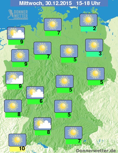 Heute Nachmittag zeigt sich Deutschland zu großen Teilen sonnig, oft mehr Wolken ziehen über den Südwesten und auch teils den Westen der Republik hinweg, sonst bleibt es meist nur bei lockeren Wolken. Es bleibt landesweit trocken bei Temperaturen von nur noch 2 Grad an der Müritz und bis 10 Grad im Breisgau. An Nord- und Ostsee weht ein teils starker Wind.