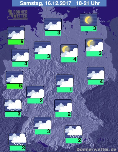 Heute Abend ist es im Nordosten meist locker bewölkt oder sogar sternenklar. Im großen Rest des Landes dominieren jedoch dichte Wolken und vor allem im Süden und Südwesten fällt dazu gebietsweise Schnee oder Schneeregen, sonst bleibt es meist trocken. Die Temperatur liegt bei 1 bis 6 Grad.