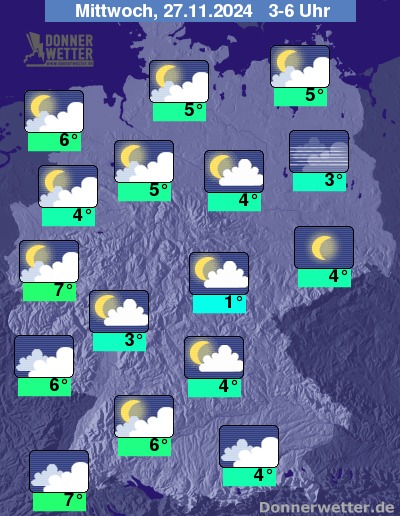 Die Temperaturen gehen in den Frühstunden zurück auf Werte um 7 Grad am Oberrhein und 1 Grad in Franken.