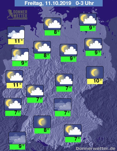 In der Nacht auf Freitag zeigt sich der Himmel über weiten Teilen des Landes locker bewölkt, im Nachtverlauf nimmt die Bewölkung an den Küsten sowie im Südwesten zu. Zeitweilige Schauer sind in der zweiten Nachthälfte dann an der Nordseeküste zu erwarten, sonst bleibt es meist trocken.