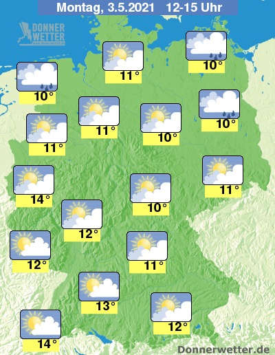 Heute Abend klingen letzte Schauer im Norden nach und nach ab und Auflockerungen werden häufiger, sonst ist es überwiegend aufgelockert, gebietsweise stark bewölkt und es bleibt trocken. Die Temperatur liegt bei 10 Grad in Rostock und bis 15 Grad in Freiburg.