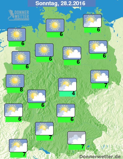 Heute halten sich im Süden weitgehend dichte Wolken, die sich im Tagesverlauf auch noch etwas weiter nach Norden hin ausbreiten. Über der Nordhälfte der Republik bleibt es hingegen mehrheitlich heiter oder sonnig. Es bleibt bundesweit trocken. Die Temperatur steigt auf 4 Grad im Eichsfeld und bis 8 Grad im Rheinland.