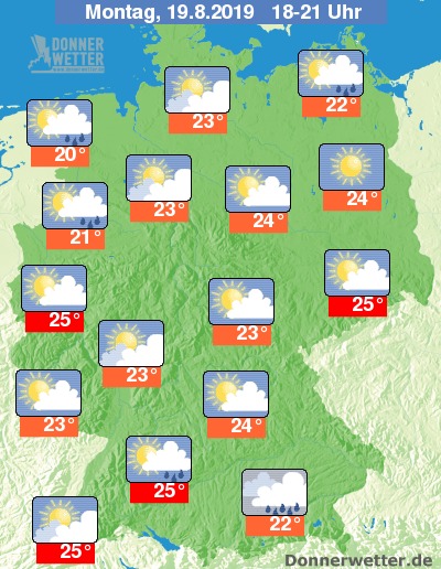 Nur selten Schauer, Höchstwerte um 25 Grad am Abend.
