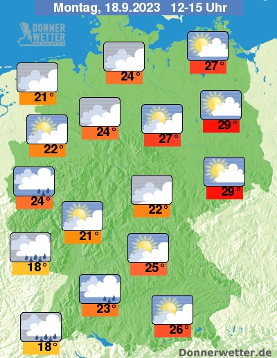 Heute Nachmittag ist es häufig stark, vor allem im Osten und Nordosten aber auch locker bewölkt, hier bleibt es meist trocken. Besonders in den westlichen Landesteilen und im Süden bilden sich einzelne Schauer, vereinzelt auch Gewitter. Die Temperatur liegt bei 18 Grad am Oberrhein und 29 Grad an der Neiße.