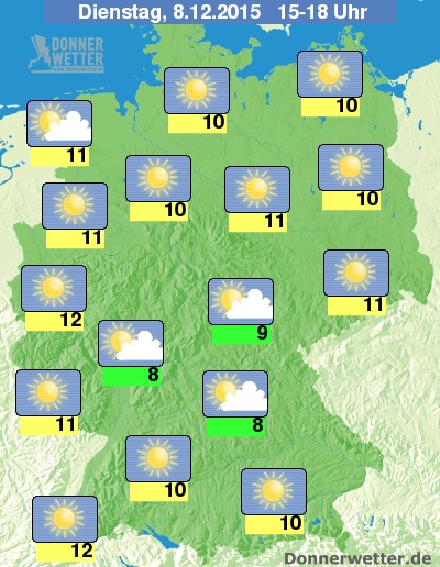 Heute Nachmittag scheint über weiten Teilen der Bundesrepublik die Sonne von einem oft wolkenlosen und sonst meist nur locker bewölkten Himmel. Gegen Abend können in den westlichsten Landesteilen dichte Wolken aufziehen, dazu bleibt es aber noch weitgehend trocken. Die Temperatur steigt auf 8 Grad in Unterfranken und bis 12 Grad im Rheinland.