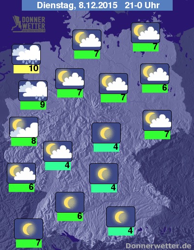 Heute Abend bleibt es über dem größten Teil der Republik locker bewölkt oder sternenklar. Im Westen und Nordwesten ziehen jedoch dichte Wolken und nachfolgend auch zeitweiliger Regen auf, sonst bleibt es trocken. Die Abendtemperatur liegt bei milden 10 Grad an der niederländischen Grenze und um 4 Grad in der Oberpfalz.