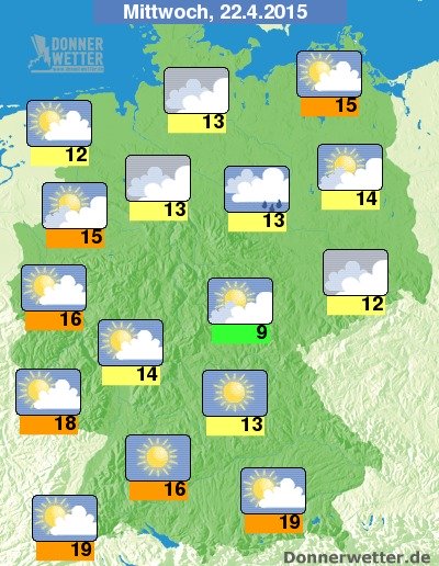 Heute ziehen vom Norden, über die Mitte bis in den Osten des Landes oft dichte Wolken durch, dazwischen kann die Bewölkung auch hier und da auflockern, gebietsweise fällt aber auch etwas Regen. Im Süden bleibt es verbreitet heiter bis sonnig und trocken. In den übrigen Landesteilen ist es teils heiter, teils aufgelockert bewölkt und ebenfalls trocken. Die Temperatur steigt auf kühle 9 Grad im Vogtland und bis 19 Grad am Bodensee.