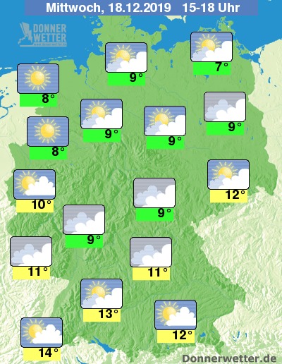 Am frühen Nachmittag tröpfelt es im Südwesten zunächst noch stellenweise. Im übrigen Land ist es teils bewölkt, teils gibt es größere Aufheiterungen.