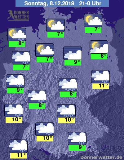 Die Temperaturen liegen in den späten Abendstunden bei Werten um 7 Grad in Bremen und um 11 Grad in Leipzig.