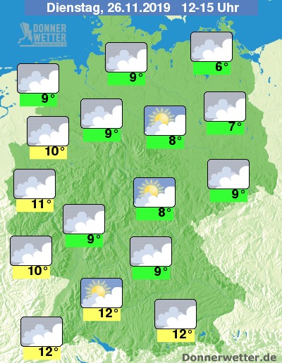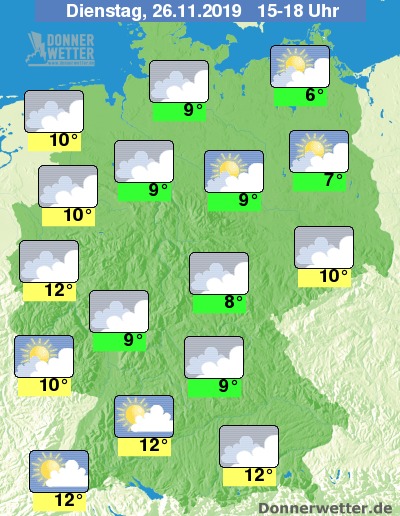 Die Temperaturen erreichen im Nachmittagsverlauf 6 Grad an der Ostseeküste  und milde 12 Grad an der Donau.